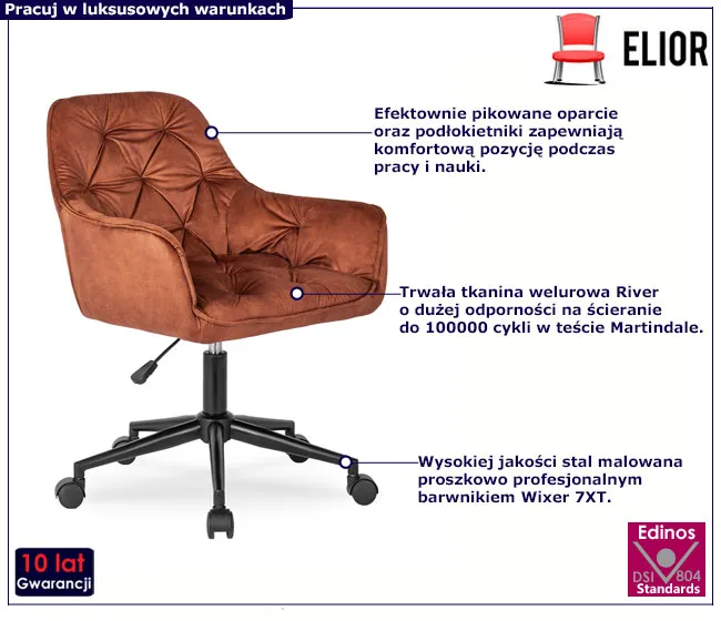 Dotyczy: Różowy welurowy pikowany fotel obrotowy - Matilda 3X