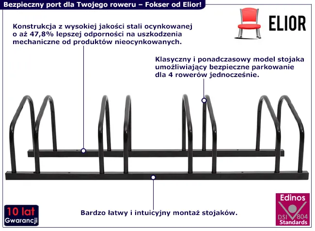 • Kolor: Czarny. Kliknij w link i sprawdź także inne stojaki rowerowe w sklepie Edinos.pl. Stwórz swóją praktyczną przestrzeń.