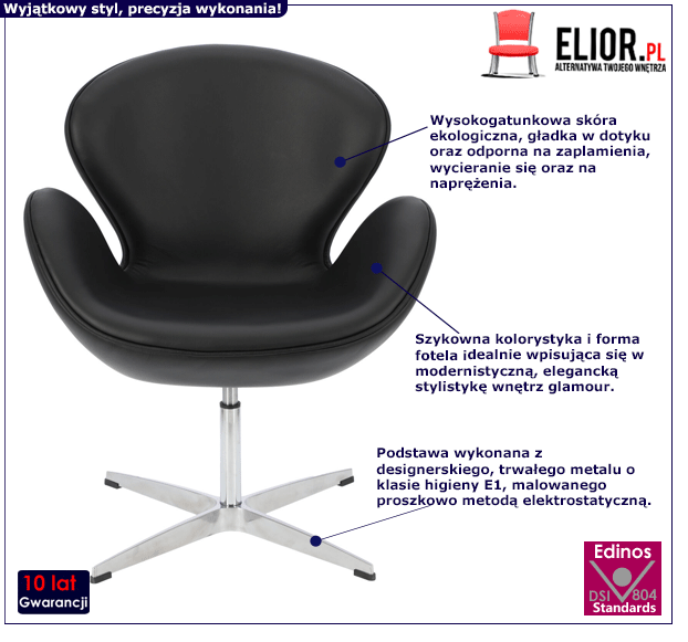 - Modna kolorystyka: czarny. Kliknij w link i sprawdź także inne inne fotele jajo w sklepie Edinos.pl. Stwórz swój praktyczny zestaw mebli.