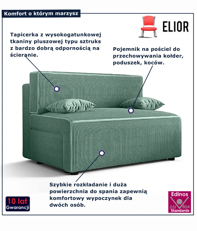• Idealna do małych wnętrz – zmieści się tam, gdzie większe sofy nie mają szans.