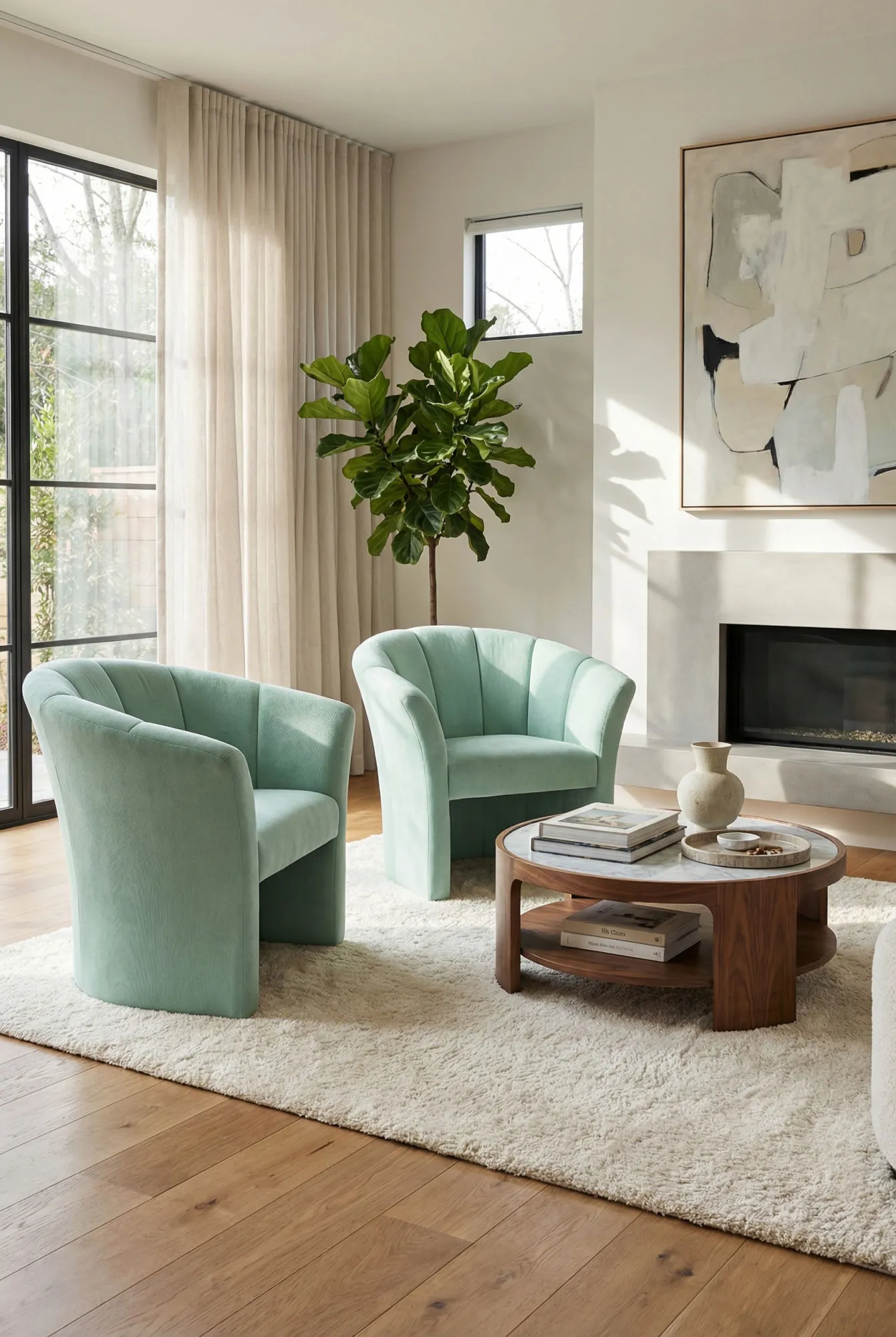 Dotyczy: Miętowy fotel z wolnostojącym podnóżkiem do salonu - Delphi