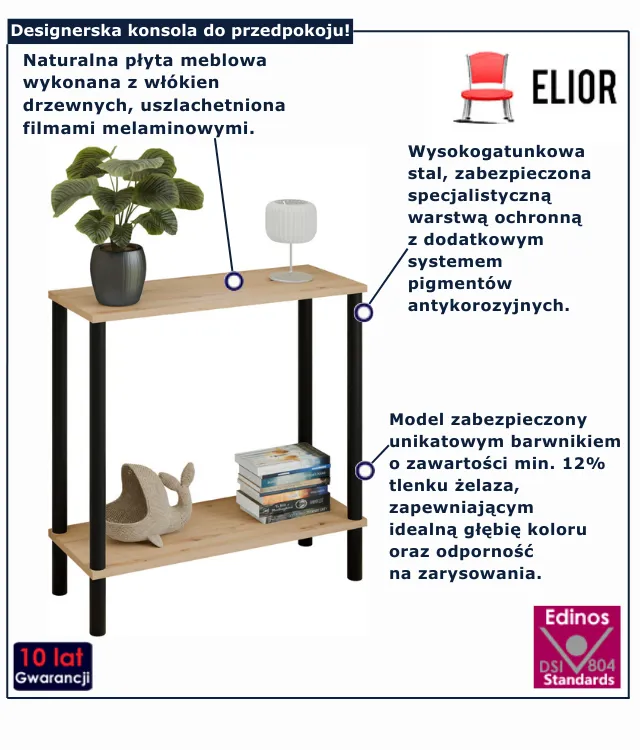 Konsola Keto 4X marki Edinos Premium to mebel, który łączy w sobie estetykę i praktyczność, sprawiając, że codzienność staje się łatwiejsza i przyjemniejsza. Dzięki niej Twój przedpokój, salon czy sypialnia zyskują elegancję i funkcjonalność, których naprawdę używasz. Postaw na sprawdzone rozwiązanie – wybierz konsolę Keto 4X marki Edinos Premium w cenie za jedyne 268 zł i przekonaj się, jak jeden mebel potrafi odmienić wnętrze. Nie odkładaj tej decyzji – spraw, by Twój dom już dziś zyskał wyjątkowy akcent!