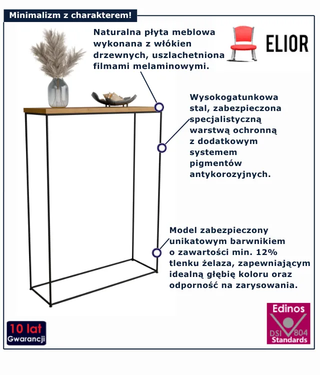 Stylowa i funkcjonalna – taka jest konsolka Krux 4X marki Elior. Ten mebel to idealne rozwiązanie, jeśli szukasz praktycznego dodatku do salonu, przedpokoju lub sypialni. Dzięki minimalistycznemu designowi i przemyślanym detalom doskonale wpasuje się w różne aranżacje. Potrzebujesz miejsca na klucze, książki lub drobne dekoracje? Ta konsolka spełni Twoje oczekiwania.