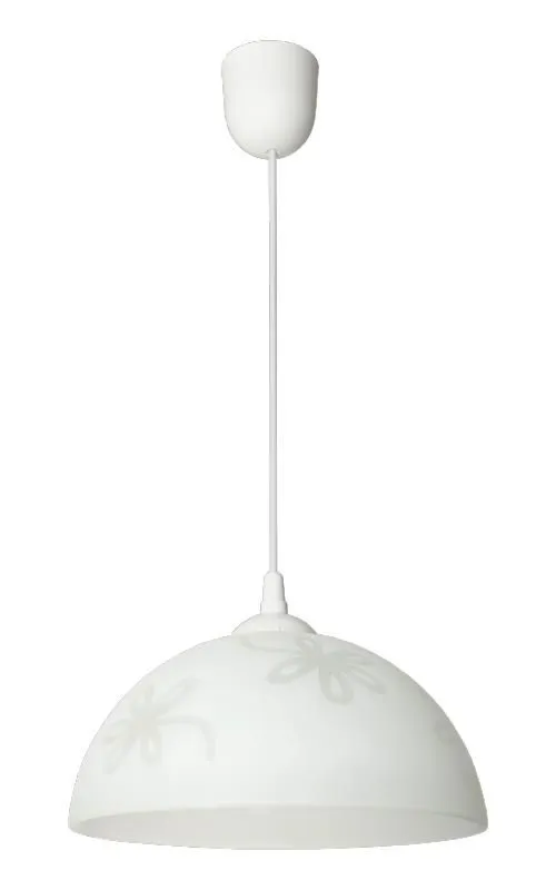 Lampa wisząca E499-Ufer to ciekawa propozycja dla miłośników stylu klasycznego. Doskonałe połączenie bieli i srebra nadaje produktowi ciekawy a zarazem elegancki wygląd. Znakiem charakterystycznym tej lampy jest szklany klosz przyozdobiony kwiatami. Umieszczenie tej lampy w dowolnym pomieszczeniu nada mu ciepłego klimatu oraz szczyptę elegancji. Produkt został wykonany z najwyższej jakości materiałów, dzięki czemu wspaniale wygląda zachowując przy tym walory niezawodności. Szczególnie polecany do wnętrz utrzymanych w stylu klasycznym.