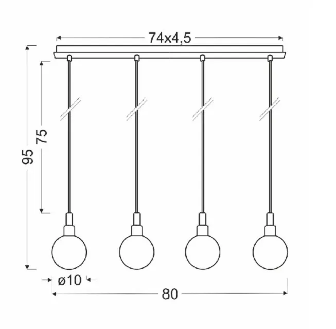 Materiał: zawiesie metalowe, klosz szklany
