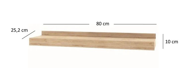 • Wymiary całkowite: szerokość: 80 cm, głębokość: 25,2 cm, wysokość: 10 cm.