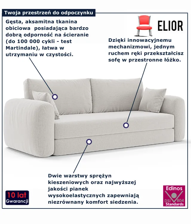 • Funkcja rozkładania – szybka zmiana w przestronne łóżko lub komfortowy szezlong