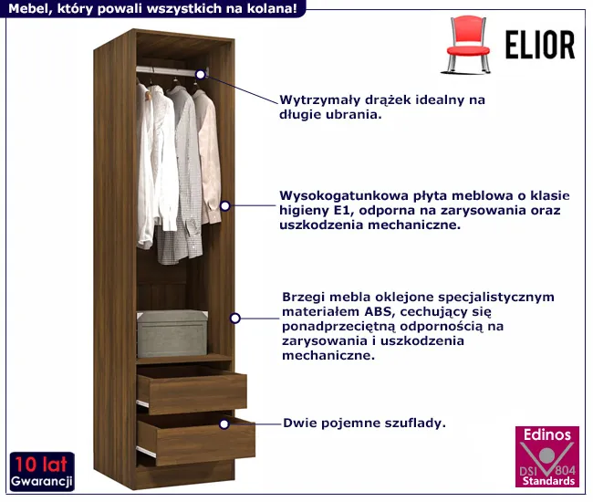Otwarta szafa Uxaro 4X marki Edinos Premium z dwiema szufladami i drążkiem na ubrania jest idealnym rozwiązaniem dla każdej osoby, która ceni sobie porządek, styl i wygodę. Nie czekaj dłużej i zamów już dziś, aby cieszyć się porządkiem i stylem gdziekolwiek zdecydujesz się ją wykorzystać! Zdecyduj się już dzisiaj na zakup w promocyjnej cenie 1198 zł.