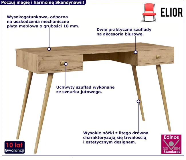 Dotyczy: Skandynawskie biurko z szufladami macchiato - Geza 13X