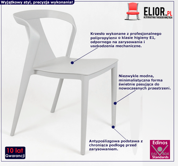- Modna kolorystyka: szary. Kliknij w link i sprawdź także inne krzesła minimalistyczne w sklepie Edinos.pl. Stwórz swój praktyczny zestaw mebli.
