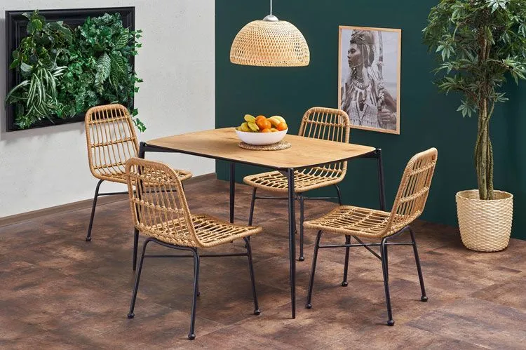 Stół to obligatoryjny mebel w każdym domu. Jeśli korzystasz z niego wyjątkowo często i intensywnie, musisz mieć gwarancję, że będzie wytrzymały, solidnie skonstruowany i odporny na wszelakie uszkodzenia. Z taką myślą proponujemy Ci nasze najnowsze dzieło. To stół wielozadaniowy. Codzienne posiłki, obiad z przyjaciółmi lub rodziną czy praca z laptopem. We wszystkich sytuacjach sprawdzi się idealnie. Będzie na Ciebie czekał gdy wstaniesz rano, popijając przy nim filiżankę kawy, przejrzysz prasę lub najnowsze wiadomości. Ugości Cię zawsze gdy będziesz tego potrzebować. Jest też genialnym meblem do zabawy z dziećmi. Jego blat zapewni dużo miejsca aby rozłożyć puzzle i gry planszowe. Gdy przyjdzie czas na odrobienie lekcji zawsze chętnie posłuży jako biurko. Jak przystało na stół do zadań specjalnych posiada solidny, odporny na zabrudzenia blat, który bardzo łatwo utrzymać w czystości. To niezwykle ważne przy tak częstym użytkowaniu. Wszystkie czynności, które będziesz wykonywać w jego towarzystwie będą okraszone przyjemnym dla oka designem stołu. Jego niezwykle ujmująca i skromna oprawa wnosi do pomieszczenia harmonię i ład. Nie ma tu miejsca na sztuczny przepych, przerost formy nad treścią. To stylowy mebel, który potrafi zachwycić swoją prostą formą i niewymuszonym szykiem. Z lekkością i finezją uzupełni wnętrza urządzone w stylu minimalistycznym, nowoczesnym i industrialnym. Wszędzie, gdzie będzie stał - czy to w salonie czy w kuchni, będzie olśniewał swoim interesującym designem i subtelną elegancją.