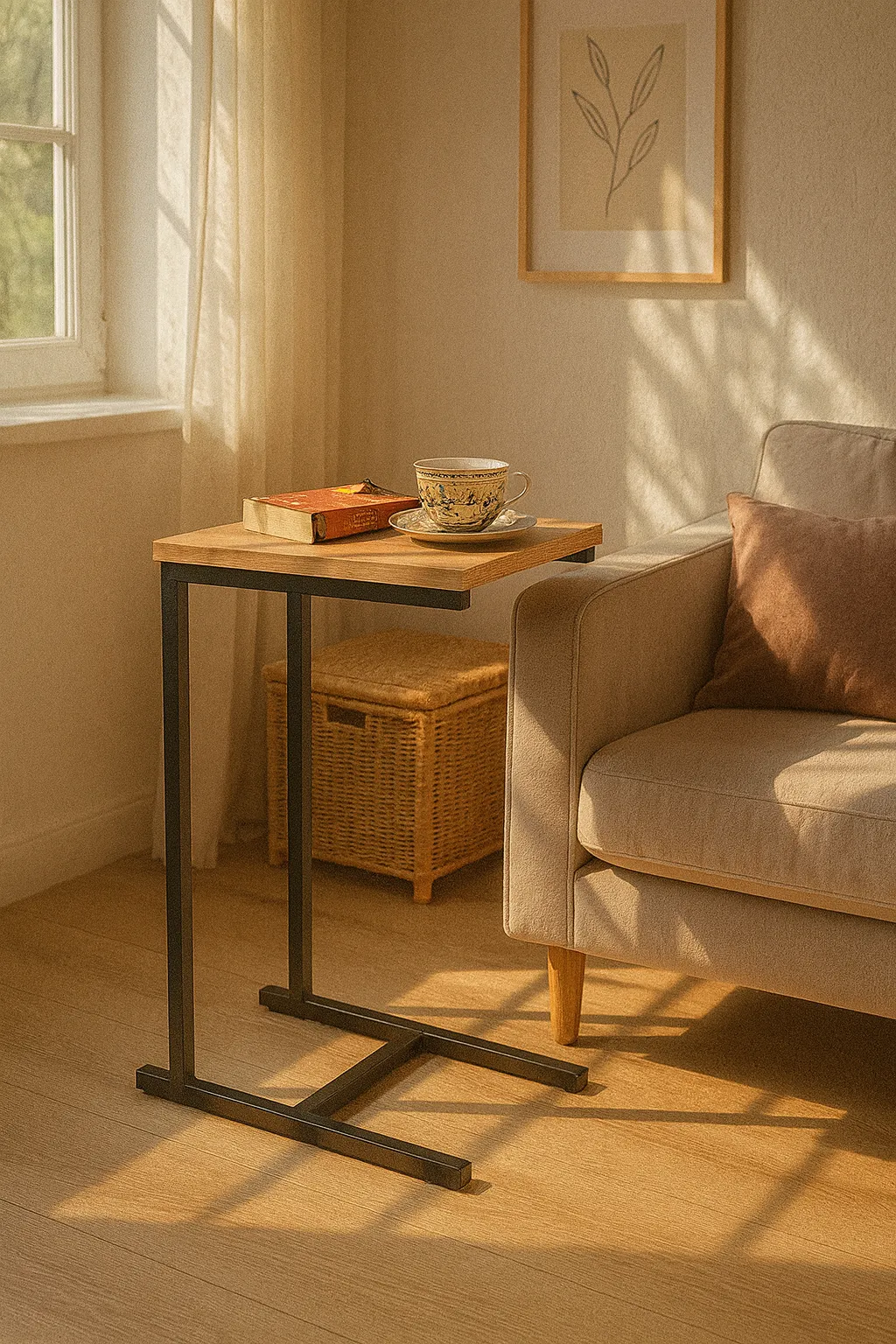 Stolik jest praktyczny i dobrze sprawdza się jako pomocniczy mebel, szczególnie w mniejszych przestrzeniach, choć blat mógłby być odrobinę większy, żeby wygodniej odłożyć więcej rzeczy jednocześnie.