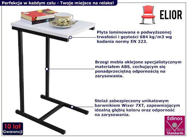 • Kolor: stelaż: czarny mat, blat: biały mat. Kliknij w link i sprawdź także inne stoliki pomocnicze w sklepie Edinos.pl. Stwórz swóją praktyczną przestrzeń.