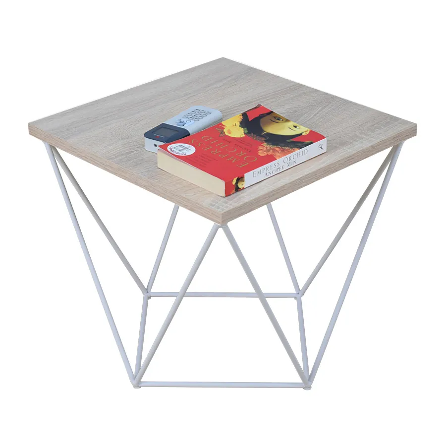 Minimalistyczny stolik druciany dąb sonoma + biały - Mokita 5X