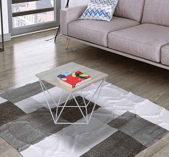 Podkreśl unikalny styl swojego salonu kwadratowym stolikiem kawowym Mokita 5X marki Edinos Premium. Ten elegancki mebel, o niespotykanym designie, łączy w sobie zarówno funkcjonalność jak i estetykę. Stolik wykonany jest z najwyższej jakości materiałów, a jego metalowy stelaż w kształcie trójkątów dodaje mu niepowtarzalnego charakteru.