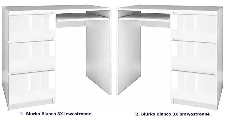W ofercie posiadamy biurka Erza 3X w kolorze biały połysk (w wersji prawostronnej i lewostronnej), a także biurka Blanco 2X w kolorze biały mat (w wersji prawostronnej i lewostronnej). Jeżeli jesteś zainteresowany innym modelem kliknij w link.