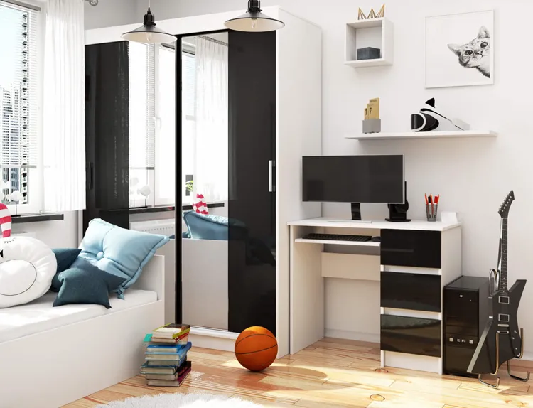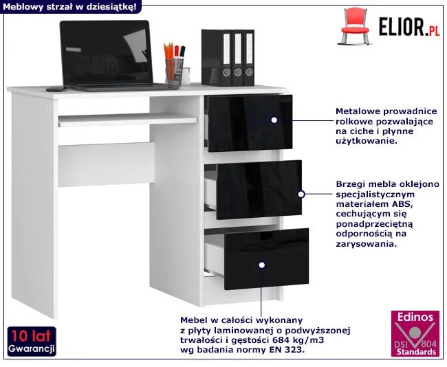 - Modna kolorystyka: biały + czarny. Kliknij w link i sprawdź także inne biurka w kolorze białym w sklepie Edinos.pl. Stwórz swój praktyczny zestaw mebli.