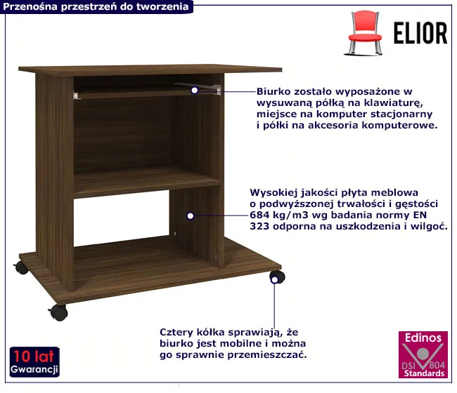 Dotyczy: Mobilne biurko na kółkach z półkami dąb sonoma - Fortis