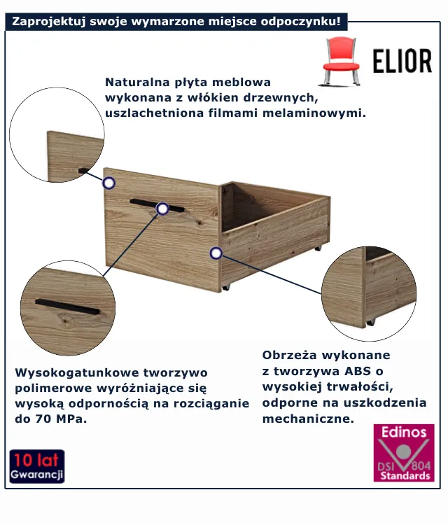 Zamawiając produkt w sklepie Edinos.pl otrzymujesz 100% gwarancję satysfakcji. Jeśli uznasz, że produkt zakupiony u nas nie spełnia Twoich oczekiwań, możesz zwrócić go do nas w ciągu 100 dni od daty zakupu, a my oddamy Ci pełną kwotę zamówienia. Ustawowo czas ten wynosi tylko 14 dni, ale jesteśmy tak pewni Twojego zadowolenia z naszych produktów, że postanowiliśmy wydłużyć ten termin do 100 dni, bo wierzymy, że dobre wnętrze nie potrzebuje słów. Czasem wystarczy jeden mebel, by poczuć się naprawdę u siebie. Dlatego tworzymy rzeczy, które nie dominują – ale współistnieją z Tobą. Są trwałe, wygodne, piękne w prostocie. Dają wolność wyboru i spokój w codziennym życiu. Dziekujemy za zaufanie.