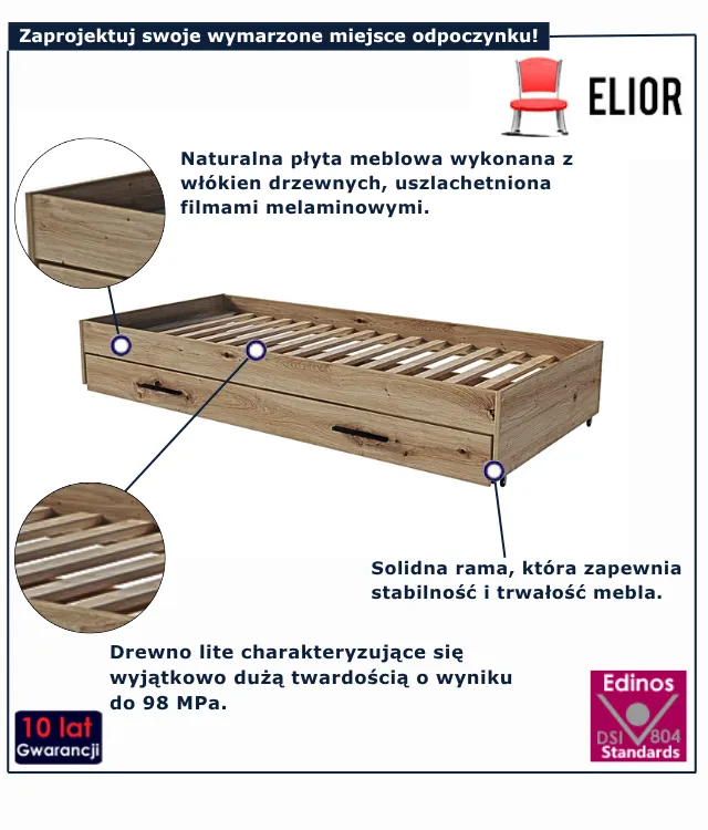 Dzięki przemyślanej konstrukcji i trwałym materiałom, szuflada Mizz 5X gwarantuje nie tylko wygodę, ale też długowieczność – niezależnie od intensywności użytkowania. To idealna propozycja do pokojów dziecięcych, młodzieżowych czy niewielkich sypialni gościnnych, gdzie każda funkcjonalność ma znaczenie. Szuflada ze stelażem i półką Mizz 5X marki Edinos Premium to mebel, który dopasowuje się do Twoich potrzeb – oferując więcej, niż się spodziewasz za jedyne 958 zł. Postaw na sprytne rozwiązania i zyskaj funkcjonalność bez kompromisów!