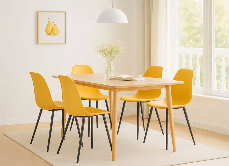 Przykładowa aranżacja z wykorzystaniem musztardowego krzesła metalowego Exin 4X