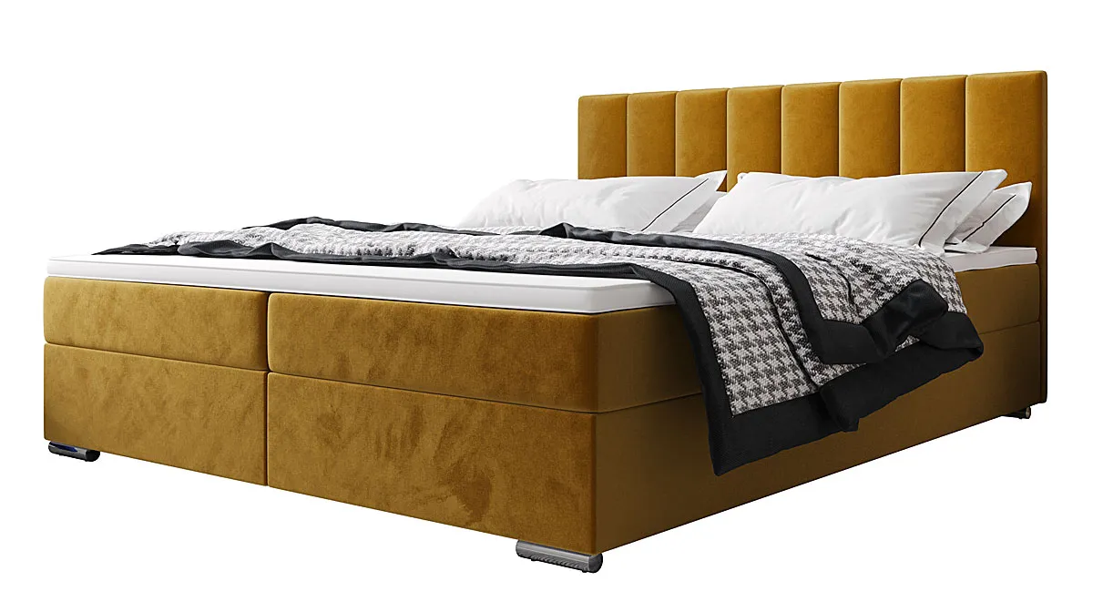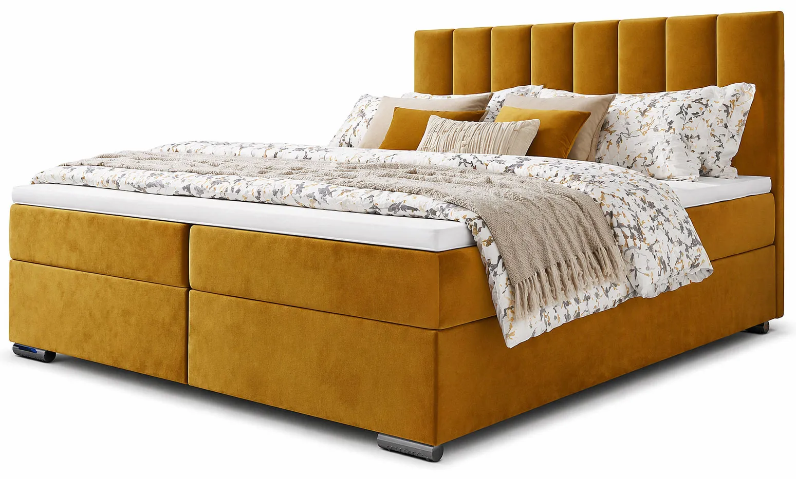 Musztardowe łóżko kontynentalne z pikowanym zagłówkiem 3 rozmiary - Zavire