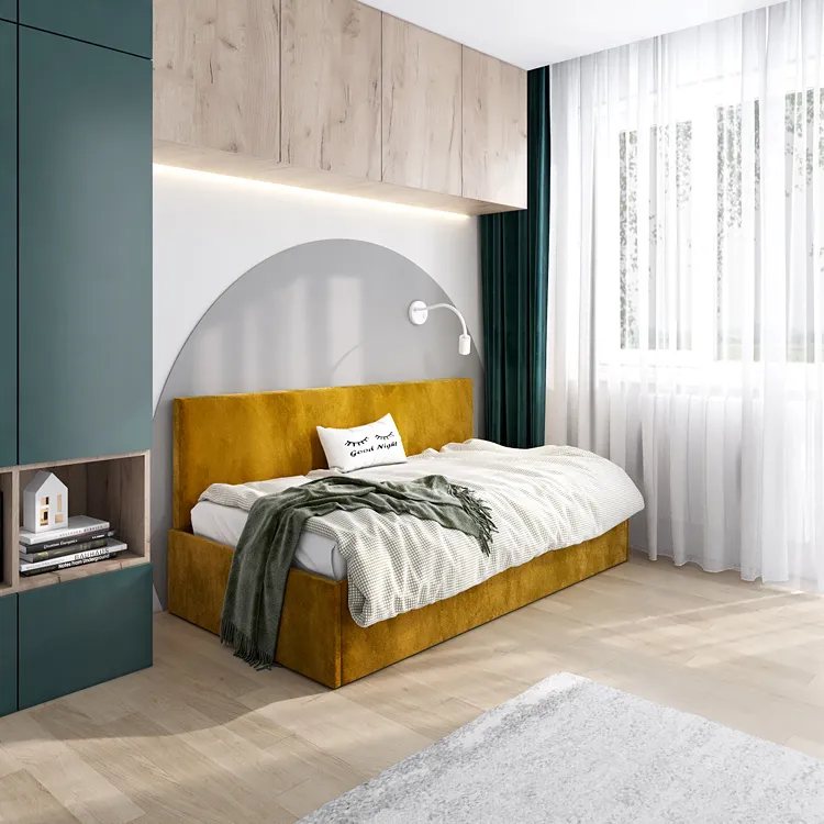 Dotyczy: Beżowe welwetowe łóżko z oparciem Salma 4X - 4 rozmiary