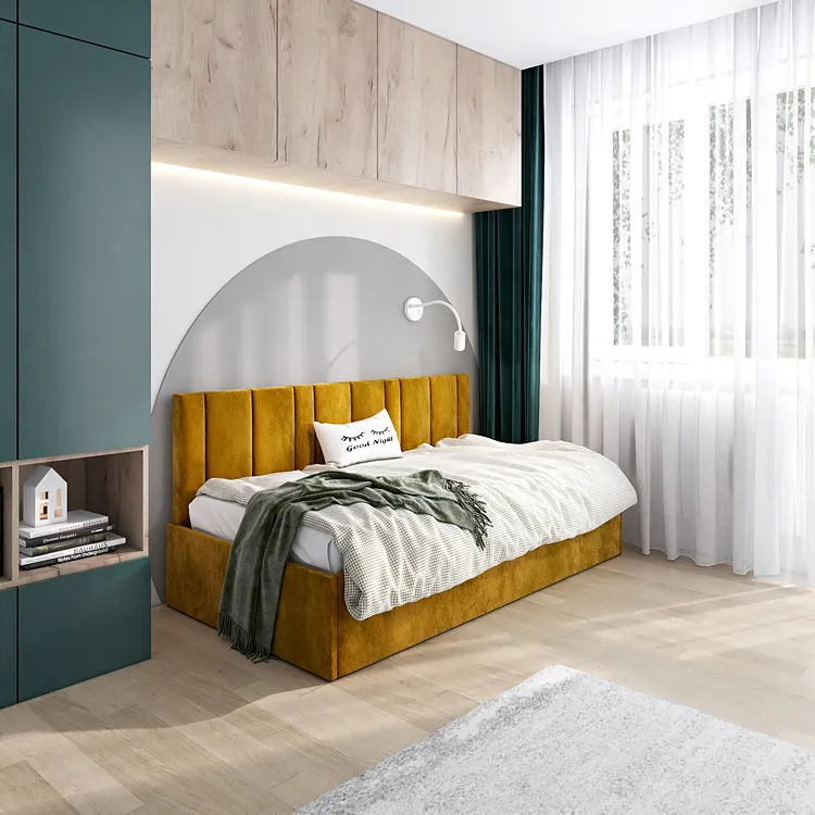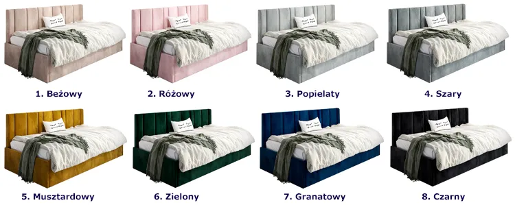 Dotyczy: Zielone tapicerowane łóżko z oparciem Meraje 4X - 4 rozmiary