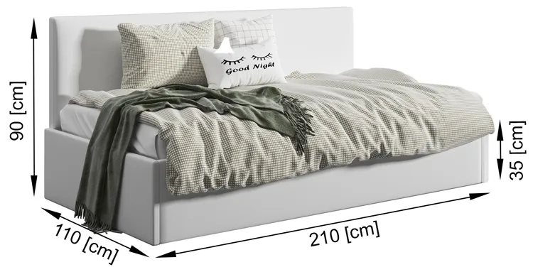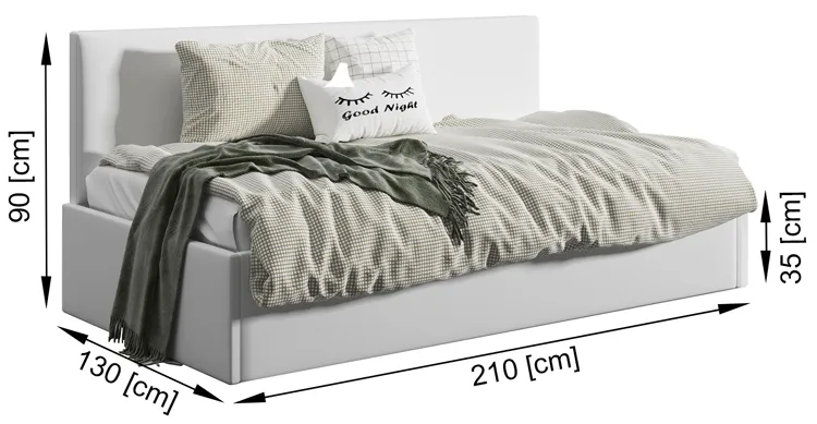 Dotyczy: Szare tapicerowane łóżko młodzieżowe Meraje 4X - 4 rozmiary