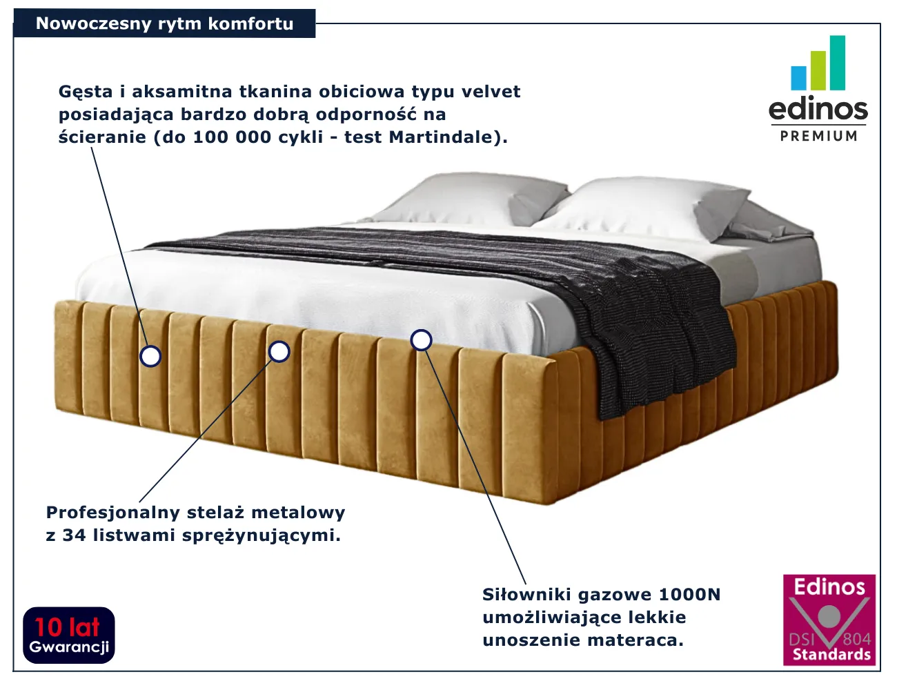 Dotyczy: Szare nowoczesne łóżko tapicerowane 5 rozmiarów - Tivrro