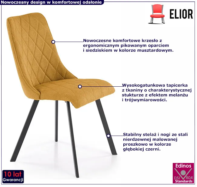 • Modny kolor: Musztardowy. Kliknij w link i sprawdź także inne krzesła metalowe tapicerowane w sklepie Edinos.pl. Stwórz swój praktyczny zestaw mebli.