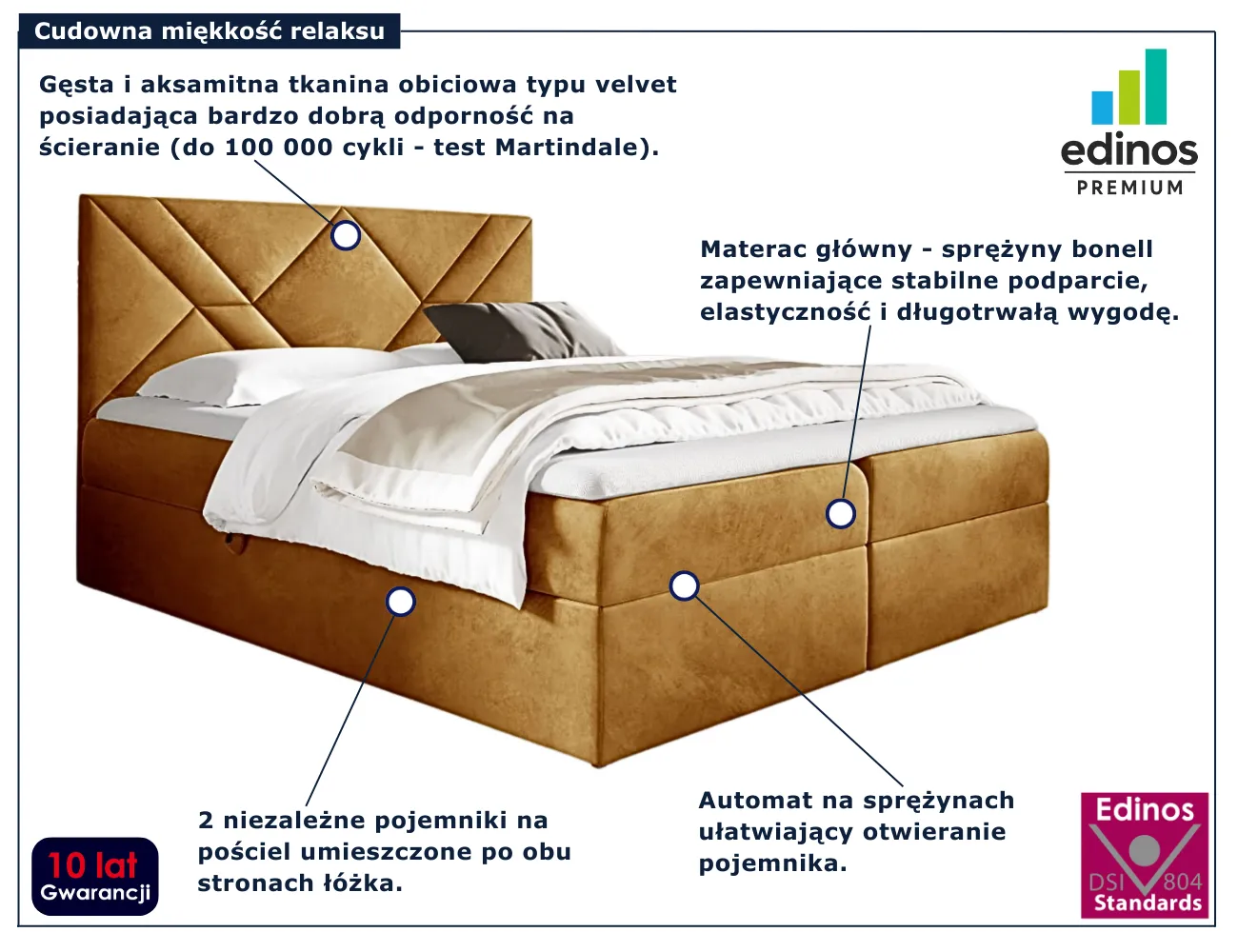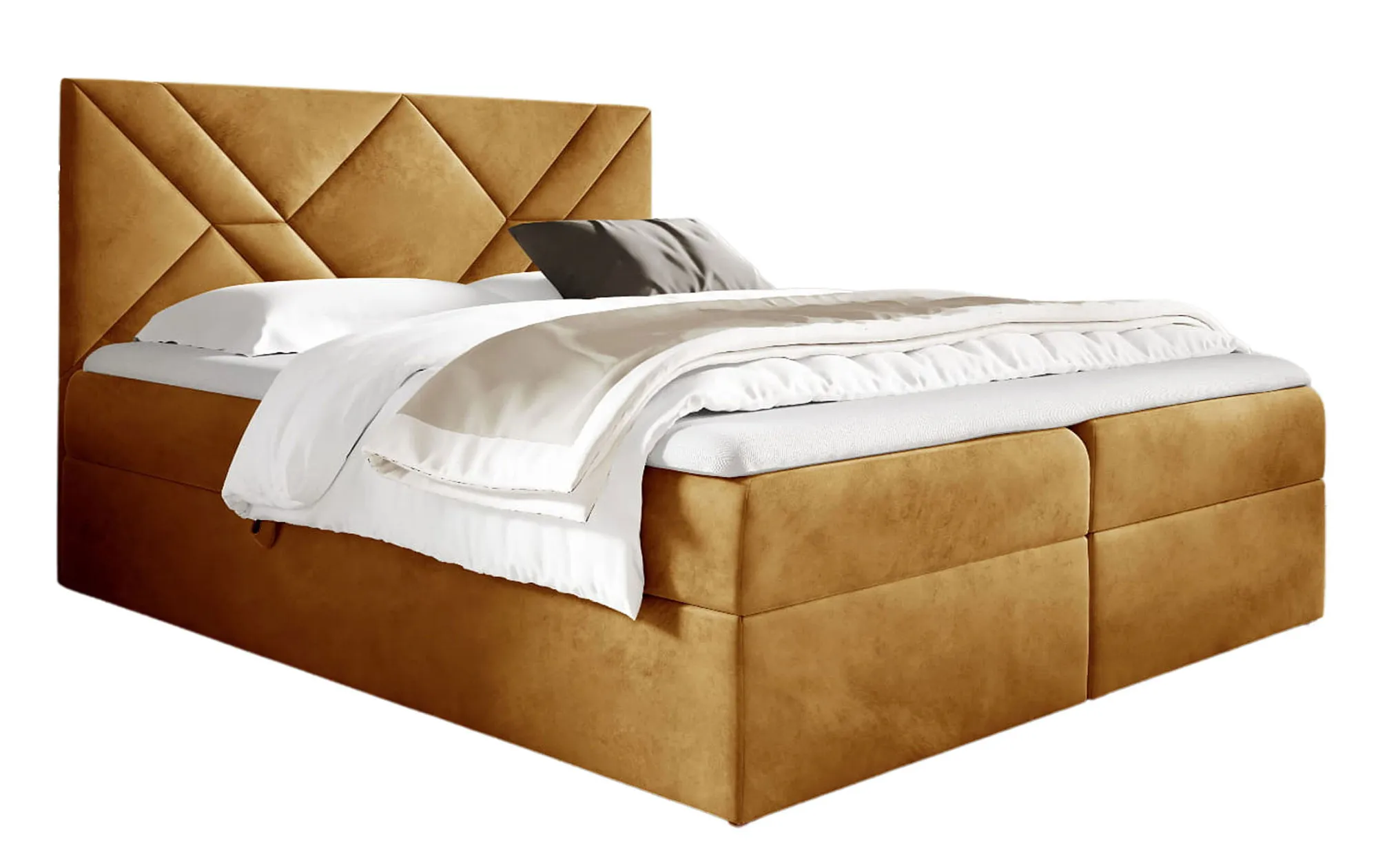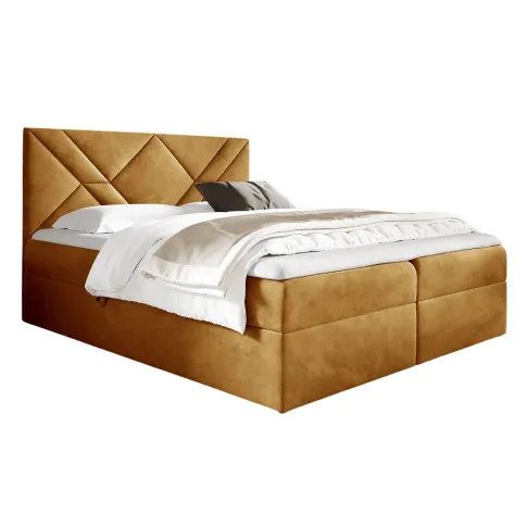 Musztardowe welurowe łóżko kontynentalne 5 rozmiarów - Velvaro