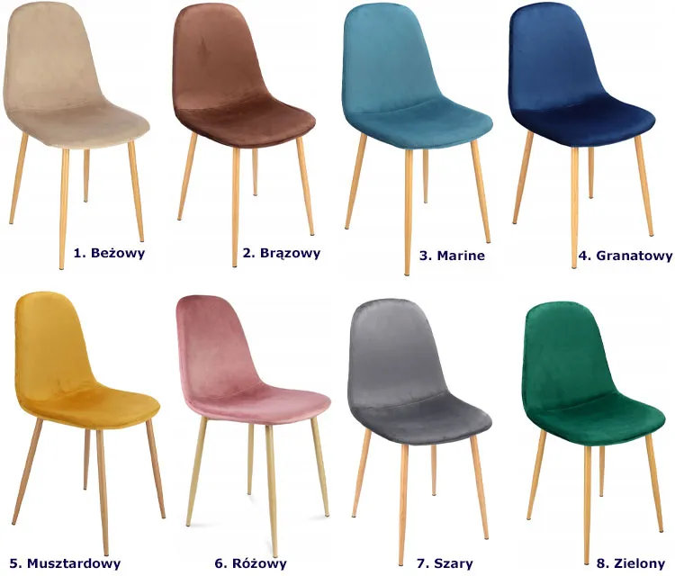 Krzesło dostępne jest w 8 wersjach kolorystycznych. Kliknij w link i sprawdź kolory krzesła welurowego Lirma.