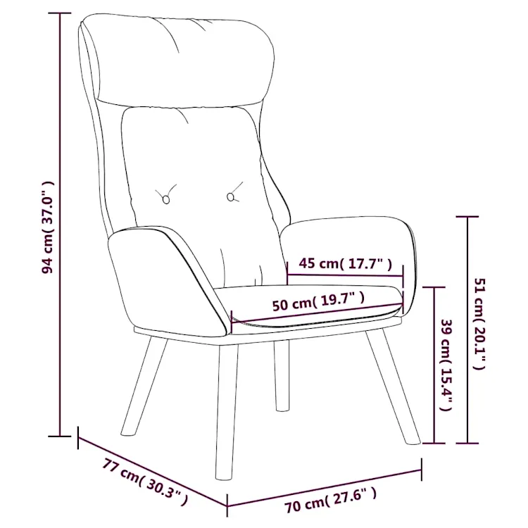 • Wymiary fotela: szerokość: 70 cm, głębokość: 77 cm, wysokość: 94 cm.