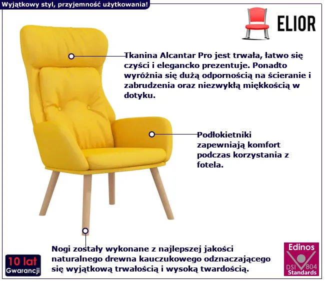 • Kolor: musztardowy. W naszej ofercie posiadamy także inne fotele.