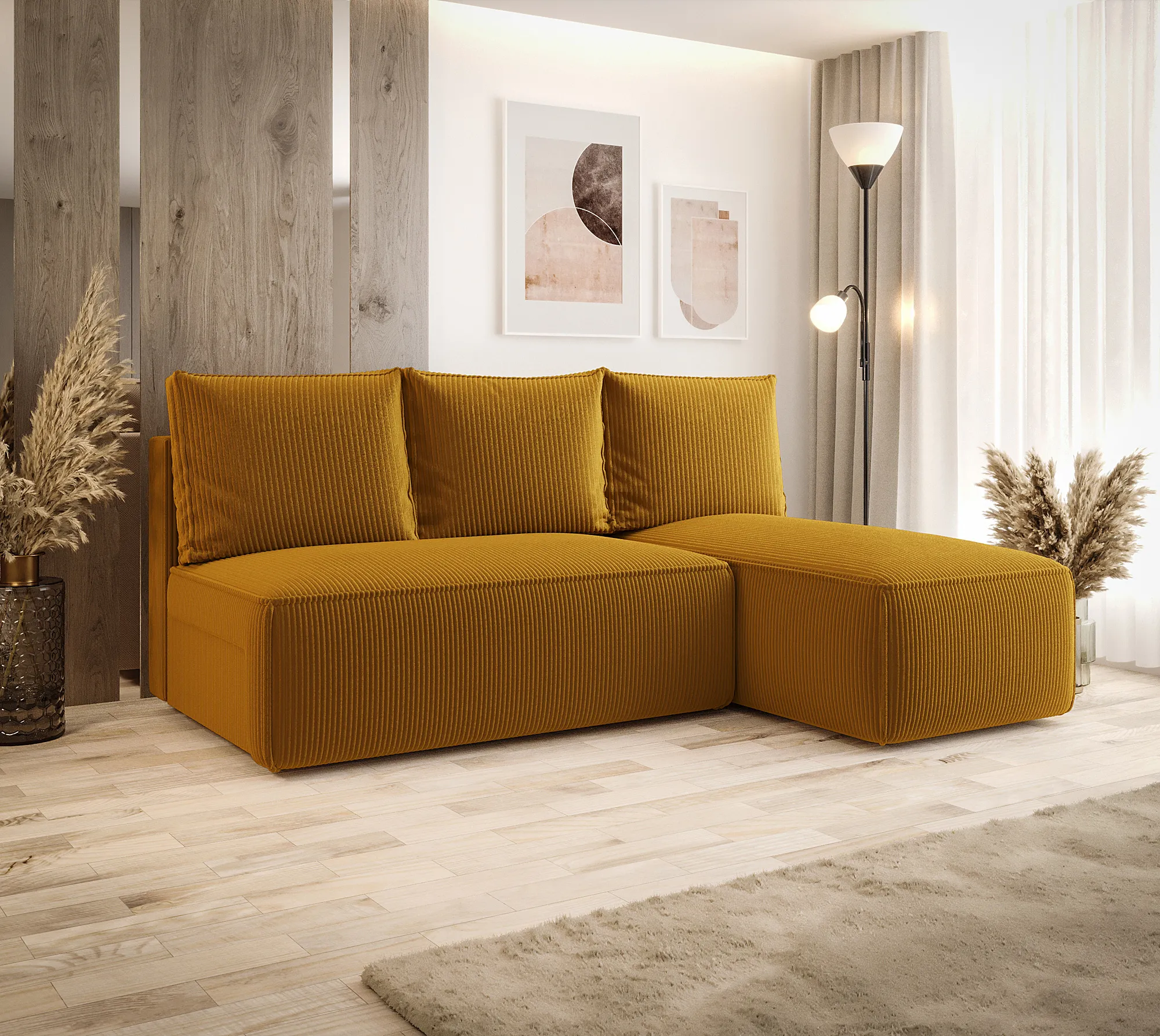 Musztardowy narożnik rozkładany z pojemnikiem - Merello 4X