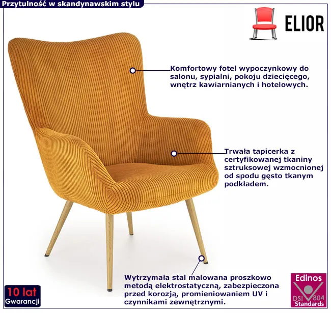 Dotyczy: Kremowy sztruksowy fotel wypoczynkowy - Koneris