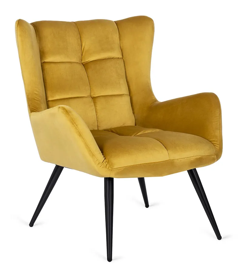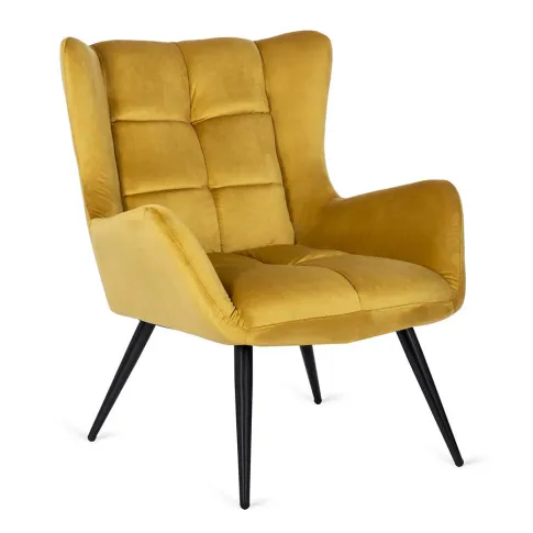 Musztardowy fotel pikowany welurowy Drefo