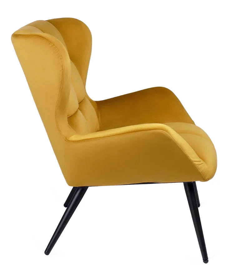 Musztardowy welurowy fotel do pokoju uszak - Drefo