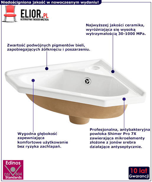 Zwróć uwagę na to, co dzieje się dziś na rynku. Umywalki nablatowe zawładnęły światem, każdy chce mieć taką u siebie. Tak właśnie działa marketing... My za to chcemy pokazać Ci, że piękna aranżacja to unikatowa aranżacja! Inna, jedyna, komfortowa. Właśnie dlatego marka Elior stworzyła umywalkę narożnikową Hoftix. Dzięki niej osiągniesz we wnętrzu więcej przestrzeni oraz unikatowy, nowoczesny design!