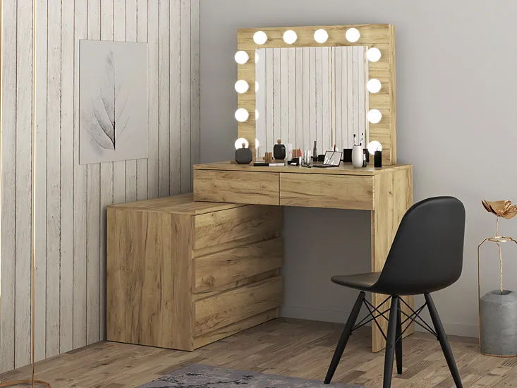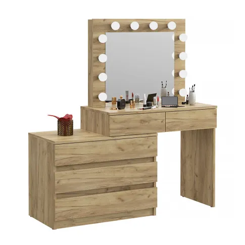 Dotyczy: Zestaw toaletki z oświetleniem LED i komody dąb sonoma - Weljor