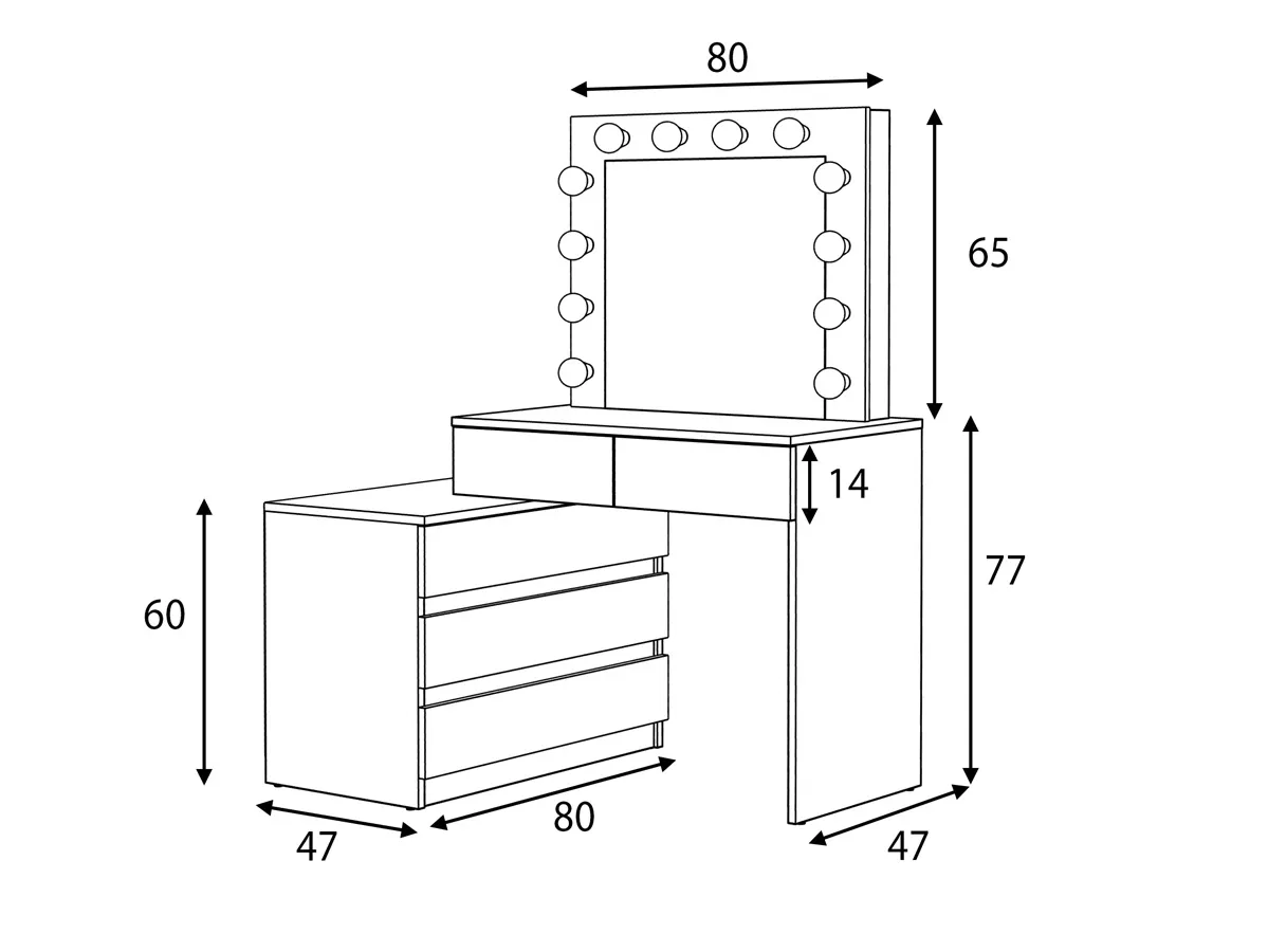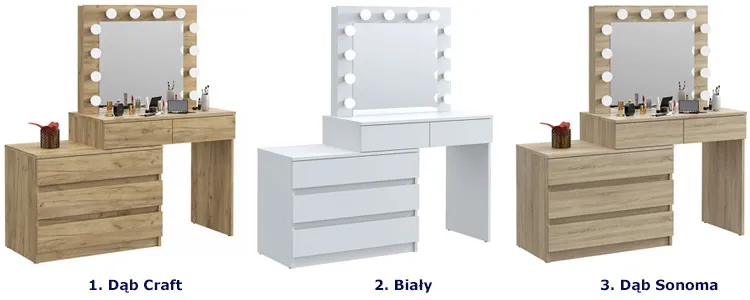 Dotyczy: Biała duża toaletka podśwetlana do makijażu z komodą - Weljor