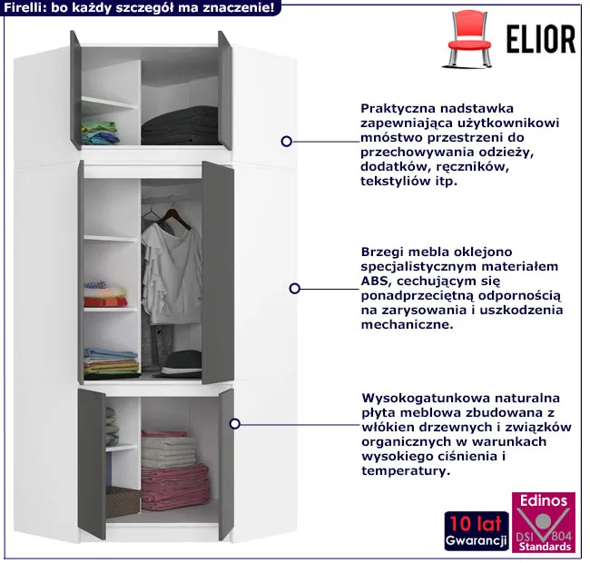 Dotyczy: Biała narożna szafa na ubrania z nadstawką - Nixer