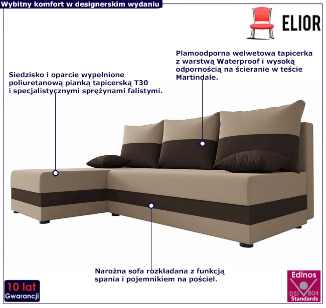 Narożnik rozkładany beżowy + brązowy - Nomi