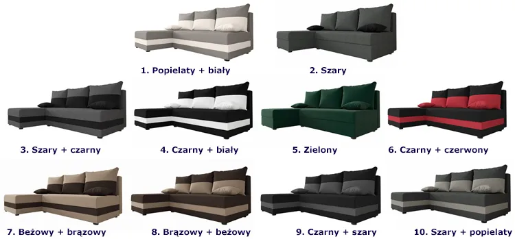 10 modnych kolorów do wyboru! W naszej ofercie posiadamy narożnik Nomi w 10 wariantach kolorystycznych. Kliknij w link i wybierz swój ulubiony model.