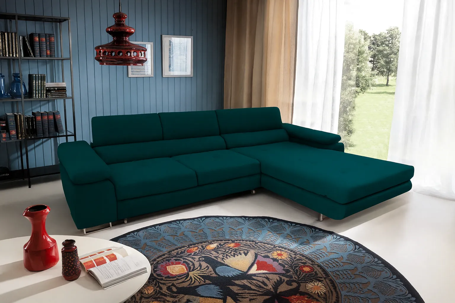 Narożnik rozkładany z funkcją spania w kolorze morskim - Grenvo