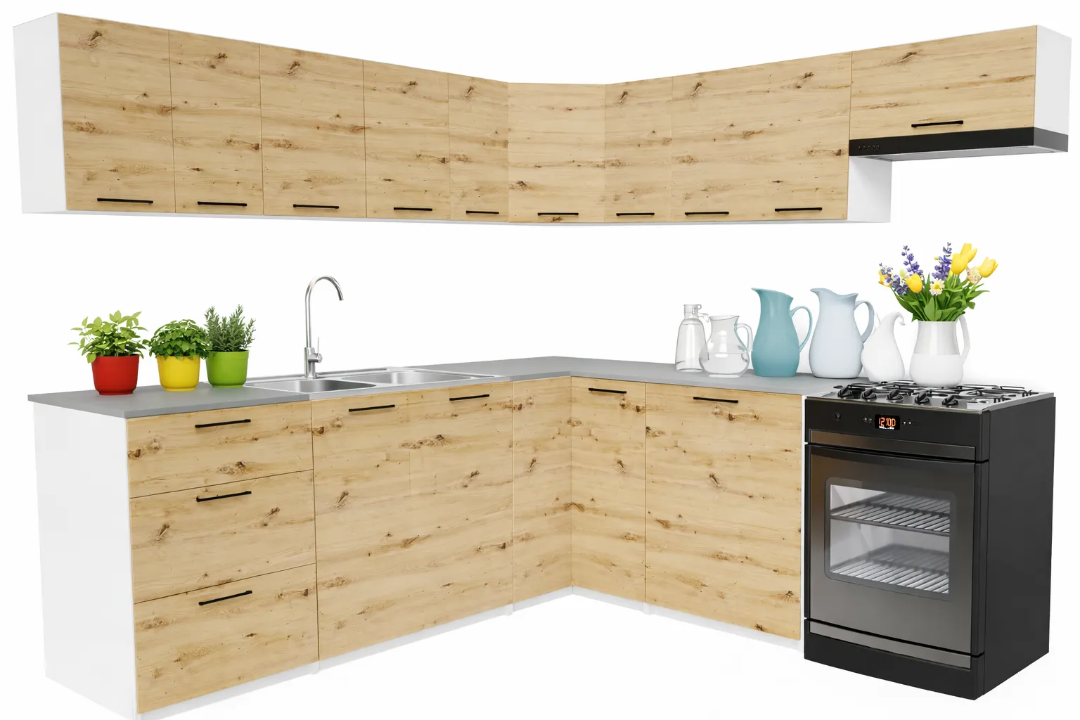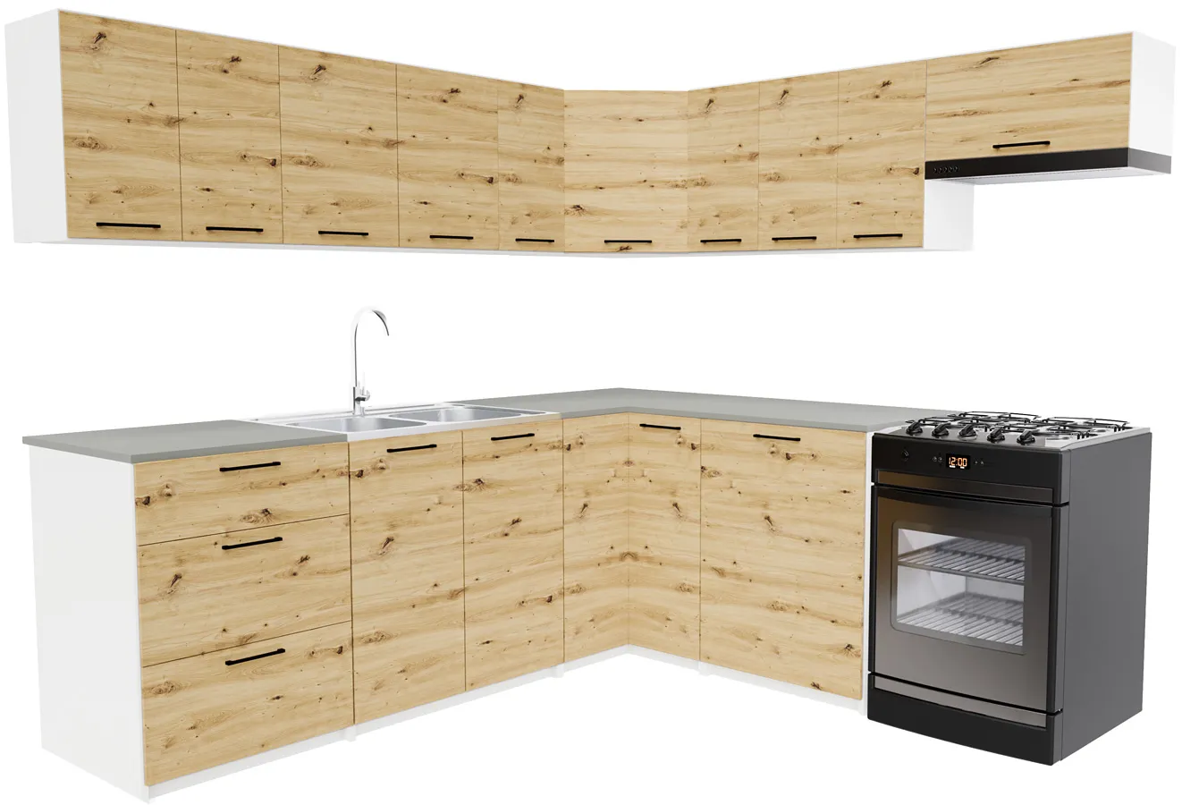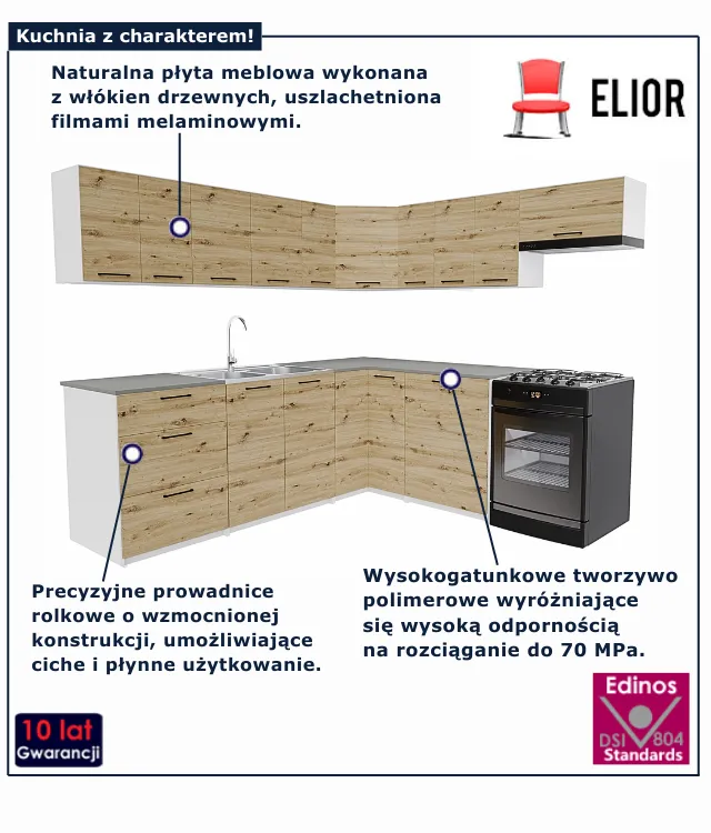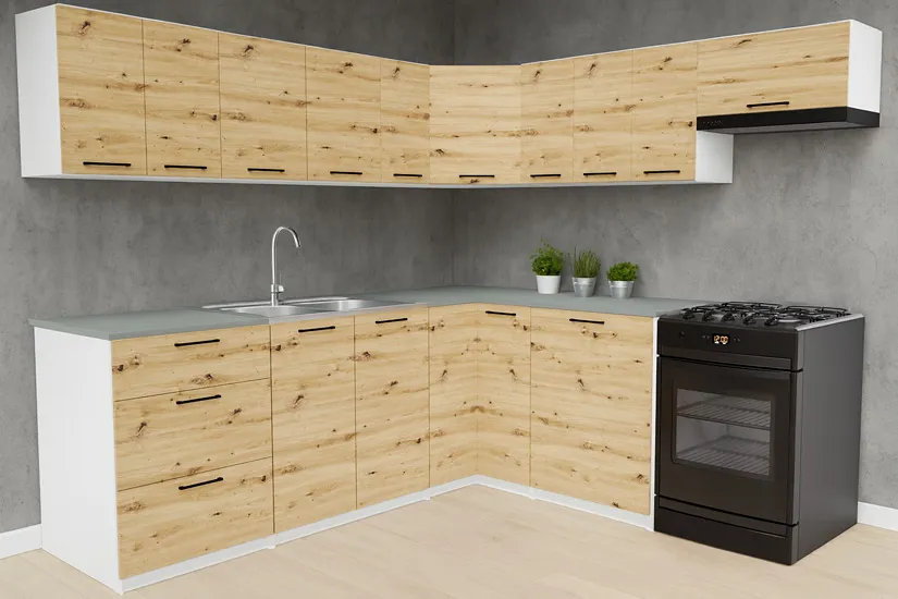 Narożny komplet mebli kuchennych dąb artisan - Esin