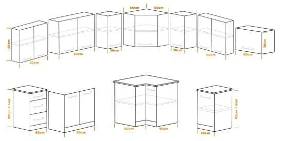 • Kompletna zabudowa w jednym zestawie: Otrzymujesz wszystko, czego potrzebujesz do pełnej aranżacji – od szafek dolnych po górne, co nie tylko oszczędza Twój czas, ale gwarantuje spójny, elegancki wygląd całej kuchni.