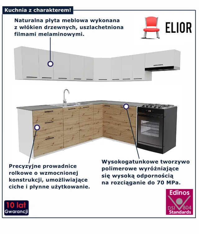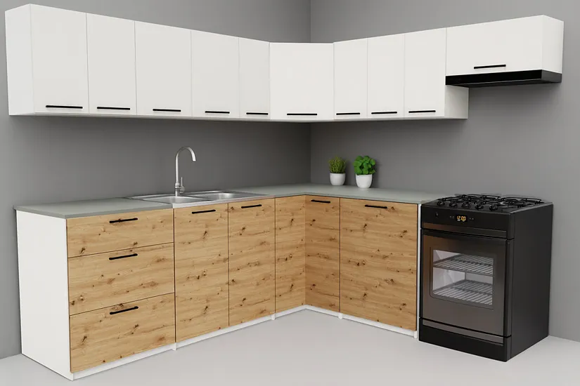 Dotyczy: Narożny komplet mebli kuchennych dąb artisan - Esin