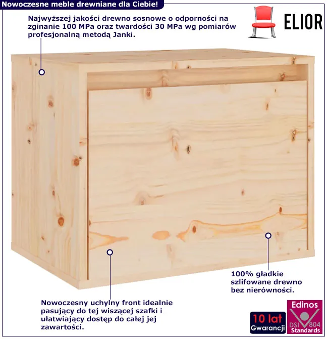 Dotyczy: Sosnowa wisząca szafka nocna miodowy brąz - Kirea 3X
